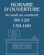 L'accueil est ouvert du lundi au vendredi de 9h à 12h et de 13h à 18h.